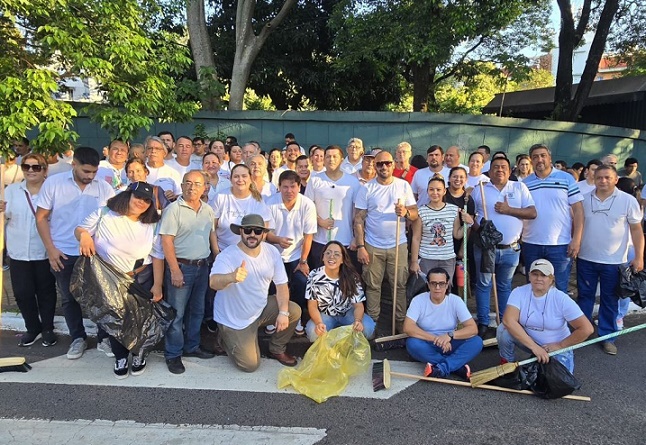Durante su intervención, el jefe comunal destacó la magnitud de la convocatoria de los funcionarios movilizados en esta iniciativa sin precedentes, con presencia activa en al menos 17 puntos de intervención simultánea, incluyendo importantes zonas como el Mercado de Abasto, la Estación de Buses de Asunción (EB), el Parque del Río y diversas avenidas y calles principales.